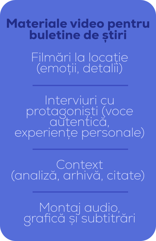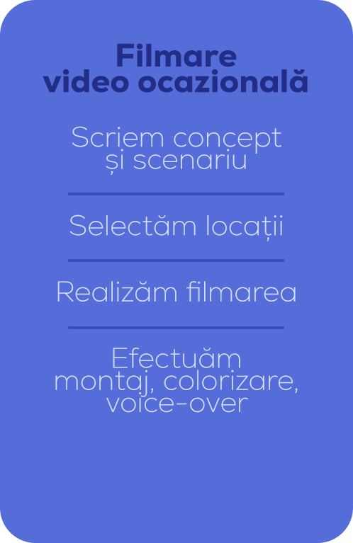 Filmarea și montajul sunt rapide, de calitate și orientate spre rezultat.